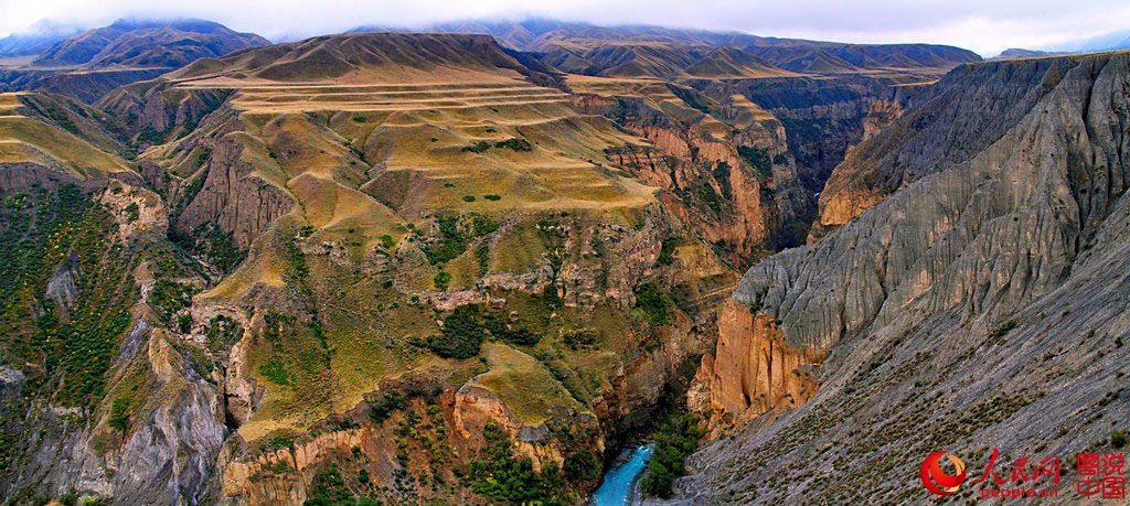 Hongshan Grand Canyon is located around Anji Haihe River, northern slope of Tianshan Mountain, northwest China's Xinjiang. (Photo/People.cn)