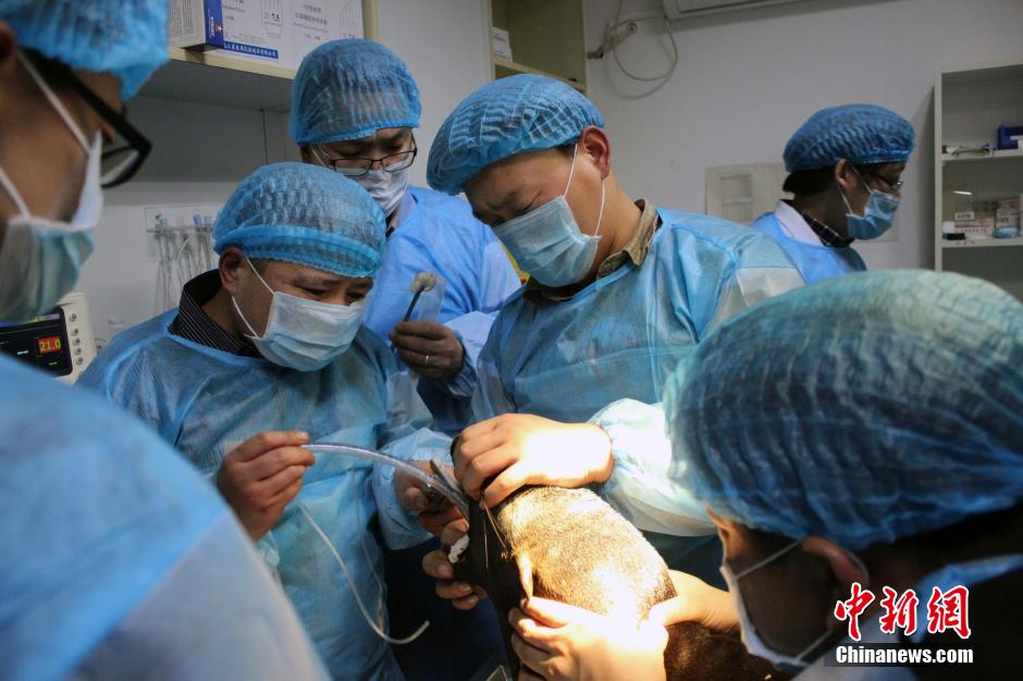 A sea lion recovers from the surgery and returns to the aquarium in Qihe, east China's Shandong province on Jan. 6, 2014. The sea lion broke its jaw in December 2014 and veterinarians spent two hours to fix the jaw with titanium plate. (CNS/Jiang Shan)