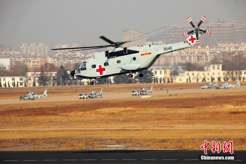 A regiment of the naval air force of the North Sea Fleet starts its first flight on Jan. 7, 2015 at an airport in east China's Shandong province. This regiment is the first carrier-based helicopter regiment in the history of the People's Liberation Army. It has successfully executed hundreds of significant tasks including scientific experiment, state visit, military drills and escort missions in the Gulf of Aden. (CNS/Hu Baoliang)