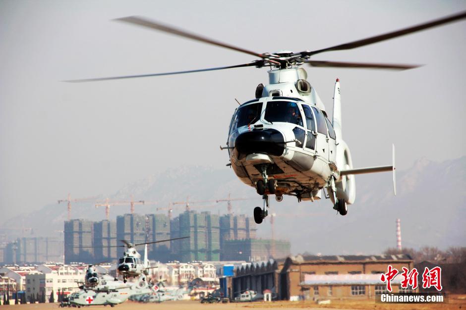A regiment of the naval air force of the North Sea Fleet starts its first flight on Jan. 7, 2015 at an airport in east China's Shandong province. This regiment is the first carrier-based helicopter regiment in the history of the People's Liberation Army. It has successfully executed hundreds of significant tasks including scientific experiment, state visit, military drills and escort missions in the Gulf of Aden. (CNS/Hu Baoliang)