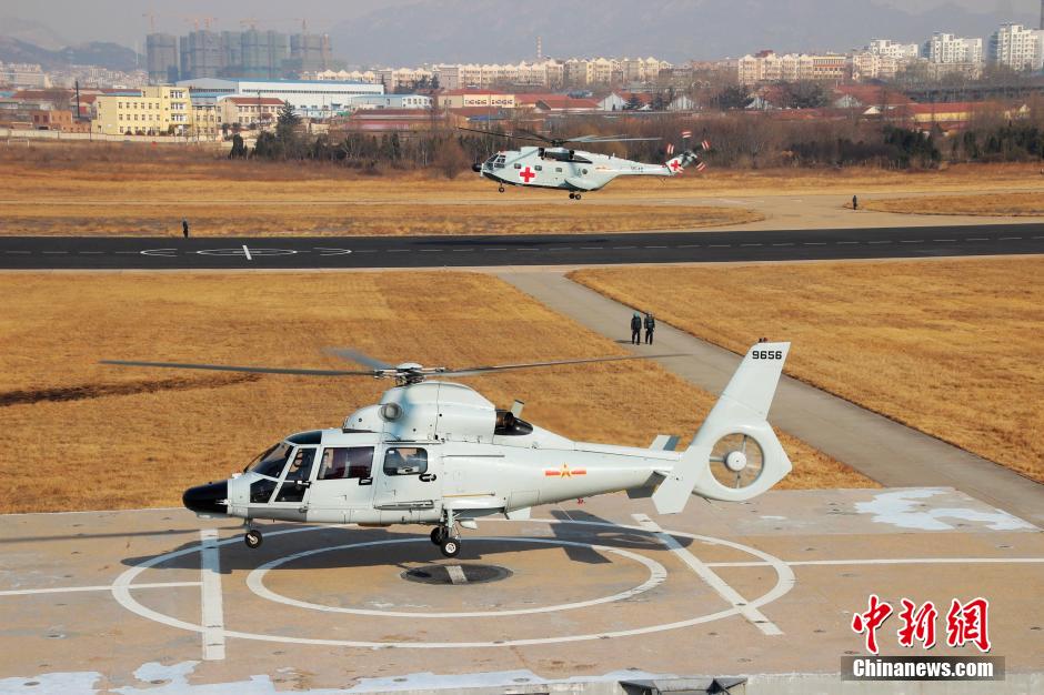 A regiment of the naval air force of the North Sea Fleet starts its first flight on Jan. 7, 2015 at an airport in east China's Shandong province. This regiment is the first carrier-based helicopter regiment in the history of the People's Liberation Army. It has successfully executed hundreds of significant tasks including scientific experiment, state visit, military drills and escort missions in the Gulf of Aden. (CNS/Hu Baoliang)