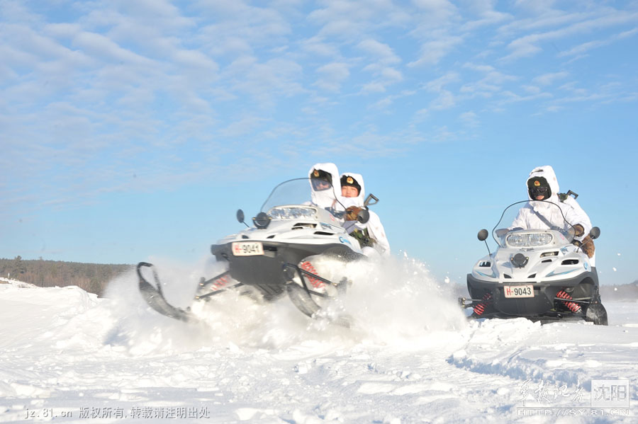 A new type of motor sled that has recently been used as a patrol vehicle by frontier guards of the Shenyang Military Command garrisoned in Mohe County, northeast China's Heilongjiang Province, close to the Russian border. [jz.81.cn]