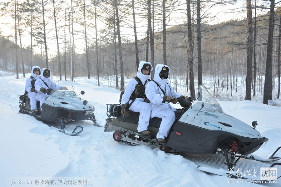 A new type of motor sled that has recently been used as a patrol vehicle by frontier guards of the Shenyang Military Command garrisoned in Mohe County, northeast China's Heilongjiang Province, close to the Russian border. [jz.81.cn]