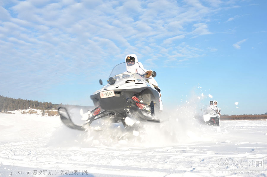 A new type of motor sled that has recently been used as a patrol vehicle by frontier guards of the Shenyang Military Command garrisoned in Mohe County, northeast China's Heilongjiang Province, close to the Russian border. [jz.81.cn]