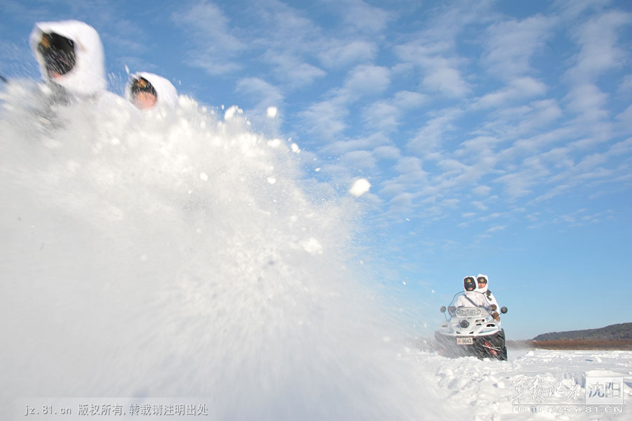 A new type of motor sled that has recently been used as a patrol vehicle by frontier guards of the Shenyang Military Command garrisoned in Mohe County, northeast China's Heilongjiang Province, close to the Russian border. [jz.81.cn]