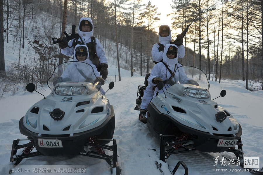 A new type of motor sled that has recently been used as a patrol vehicle by frontier guards of the Shenyang Military Command garrisoned in Mohe County, northeast China's Heilongjiang Province, close to the Russian border. [jz.81.cn]