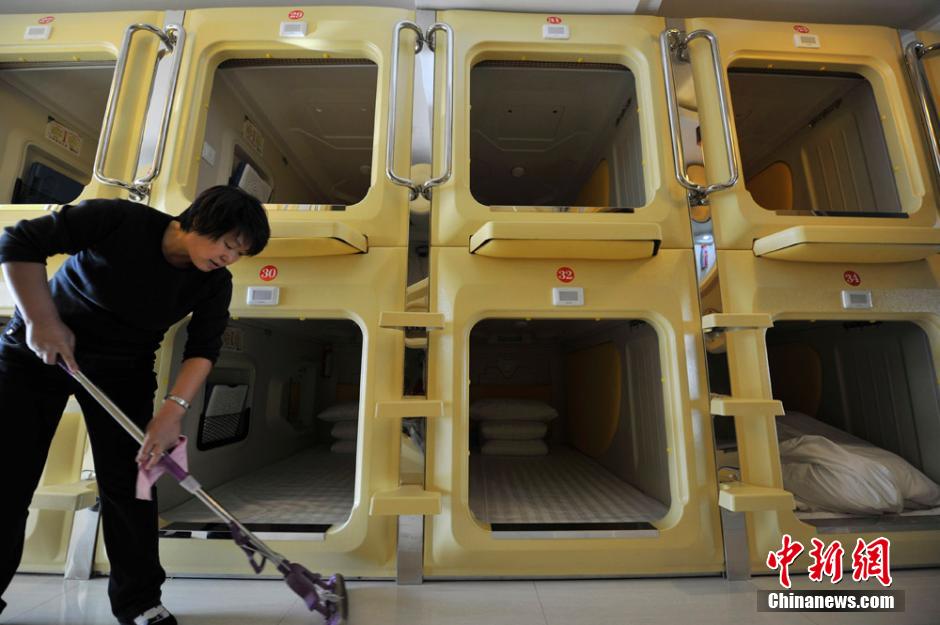 The capsule hotel is popular among tourists and college students because the ongoing urban village reconstruction project in the city has reduced the rental housing resources on market. (CNS/ Wei Liang)