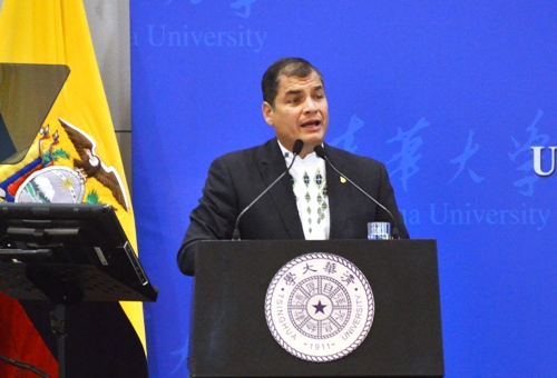 President Correa delivered a speech at Tsinghua University on Jan. 7, 2015. He observed that in the past 30 years, many Latin American countries, including Ecuador, have been affected by trends of thinking on the new free economy, and have suffered from increasing foreign debt, dollarization, dereliction of central banks, and unfair treatment on free trade.