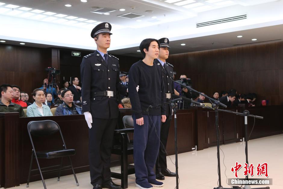 Jaycee Chan, stands trial on Friday for a drug-related crime at the Dongcheng District People's Court in Beijing, Jan. 9, 2015. Jaycee Chan, son of Chinese kung fu star Jackie Chan, was sentenced to six months in jail on Friday for drug offense at the Dongcheng District People's Court in Beijing. (Photo/CNS)
