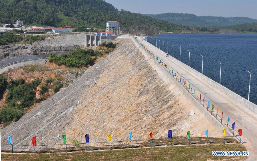 Photo taken on Jan. 12, 2015 shows the Chinese-built 338-megawatt Russei Chrum Krom River hydropower dam in Koh Kong province, Cambodia. The hydroelectric dam, Cambodia's largest hydropower station so far, commenced operation on Monday after it had been constructed for nearly five years. (Xinhua/Li Hong)