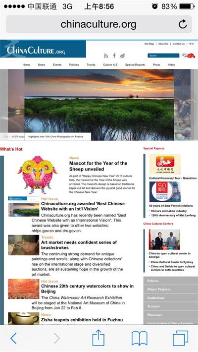 The updated version featurea eight major sections, putting emphasis on the use of new media technologies and prompt update of latest news, policies and development related to culture in China. The webpage also features social-media apps, mobile interface, RSS feed and email subscription services.