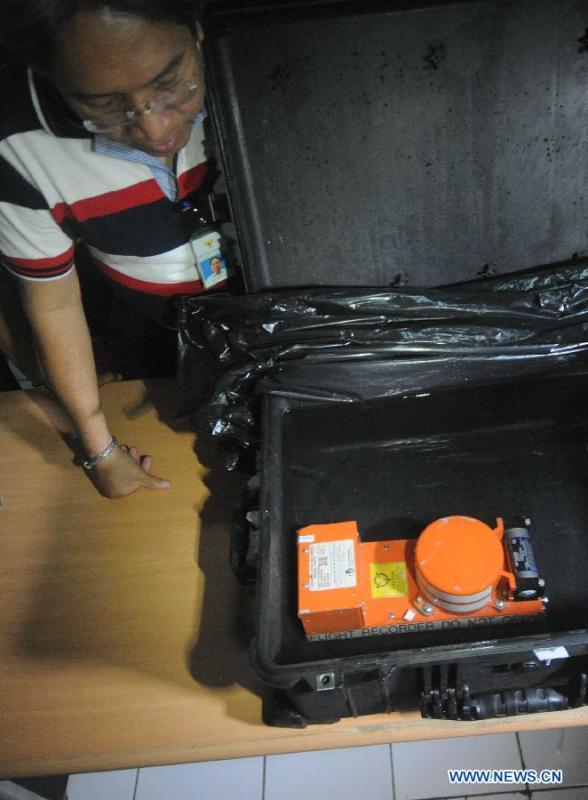 An Indonesia's National Transportation Safety Committee (KNKT) member opens the hardcase of Cockpit Voice Recorder (CVR) of the AirAsia Flight QZ8501 in Jakarta, Indonesia, Jan. 13, 2015. A senior official from the Indonesian National Search and Rescue Agency (BASARNAS) told Xinhua on Tuesday that the CVR from the crashed AirAsia flight has been recovered. (Xinhua/Agung Kuncahya B.)