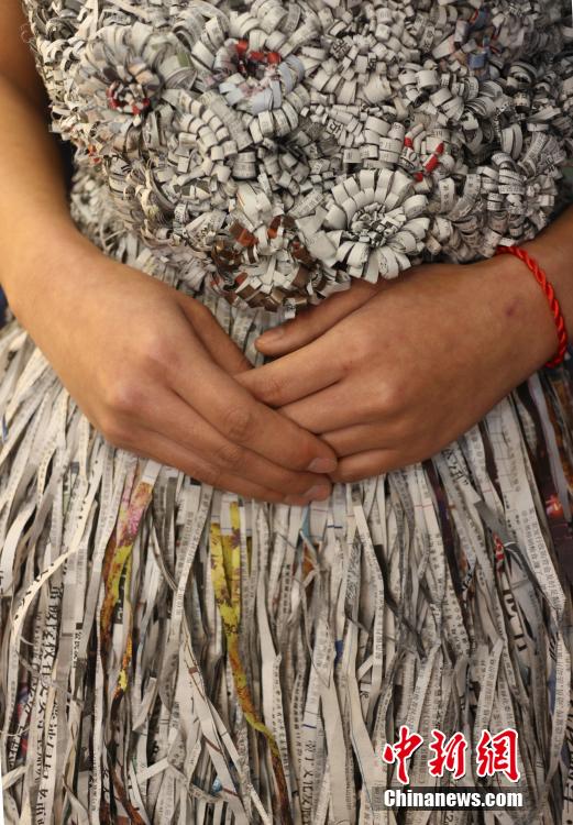 A wedding dress made from newspaper. (CNS/Zhang Lang)