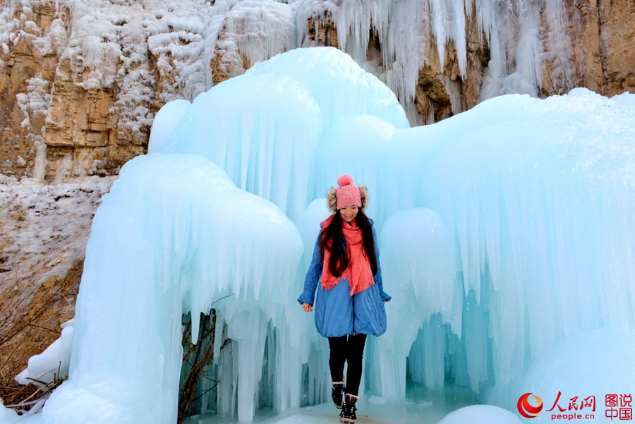 Located in Pingshan county in north China's Hebei Province, Huhushui scenic area is famous for its eco-tourism resources. The dreamlike scenery of icicles at the frozen Huhushui waterfall has attracted flocks of tourists to admire the natural beauty. (Photo/people.cn)