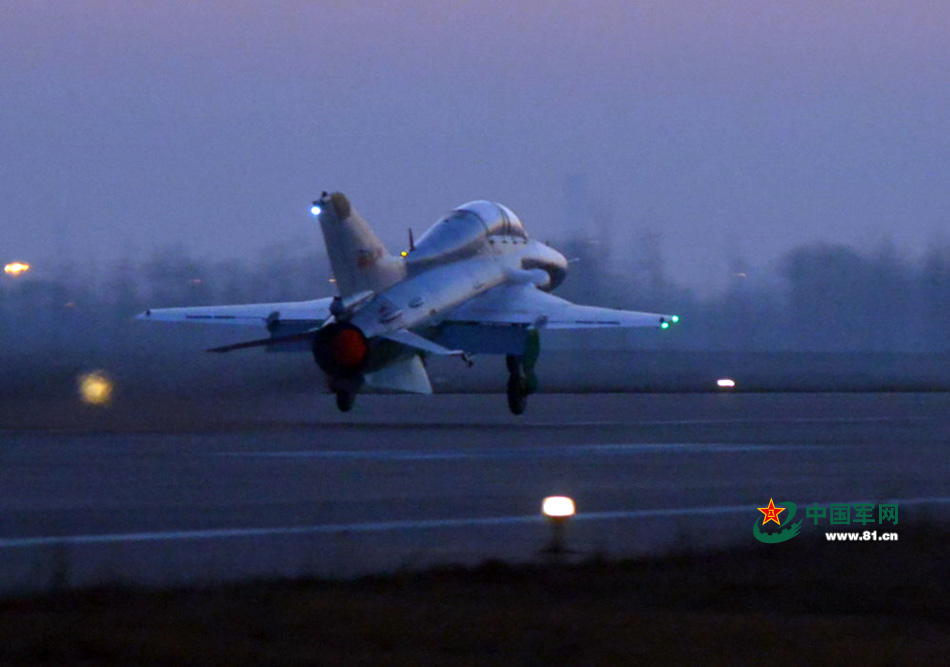 The air force of China’s North Sea Fleet conducts actual combat training on Jan. 9, 2015. As the first subject, the night flight training was a complete success. (Photo source: www.81.cn)