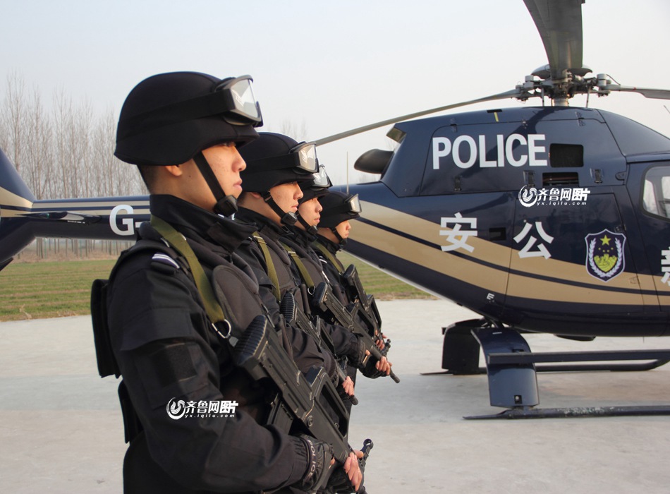 Lately, the SWAT team of Gaoxin district in Jining city, east China’s Shandong held a drill at their base. A EC120 helicopter worth 16.5 million yuan joined the drill. Cooperating with an airline company, the police department of Gaoxin district set up a helicopter team of 10 people to handle emergencies. (Iqilu.com/Chen Shanjun)
