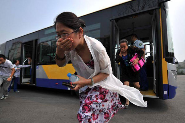 | An anti-terror drill is held in a bus station in Beijing on July 16, 2014. [Photo: Chinanews.com] |