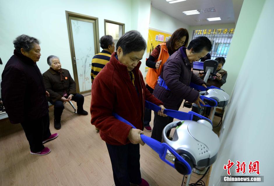 Many elders entertain and do exercise in the community elder service center. (Chinanews/Wang Dongming)