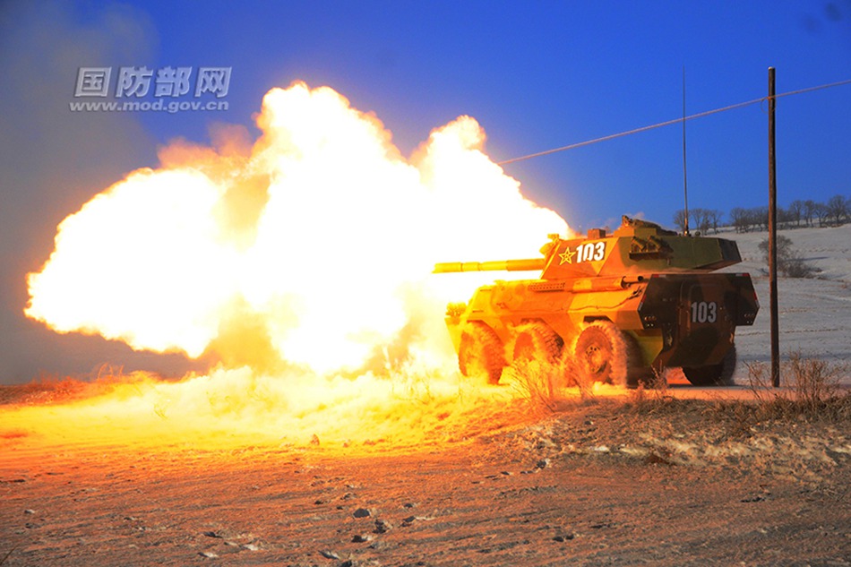 The moment of a new-type assault gun's firing.(Mod.gov.cn/Yang Dawei)