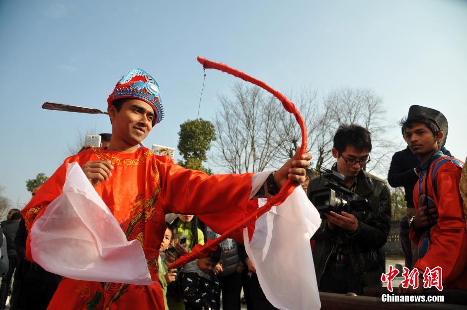 Over 100 college students from 26 countries gathered at the folk culture museum of Anhui Province to experience the traditional Chinese wedding of Qing dynasty on Jan. 18, 2015.