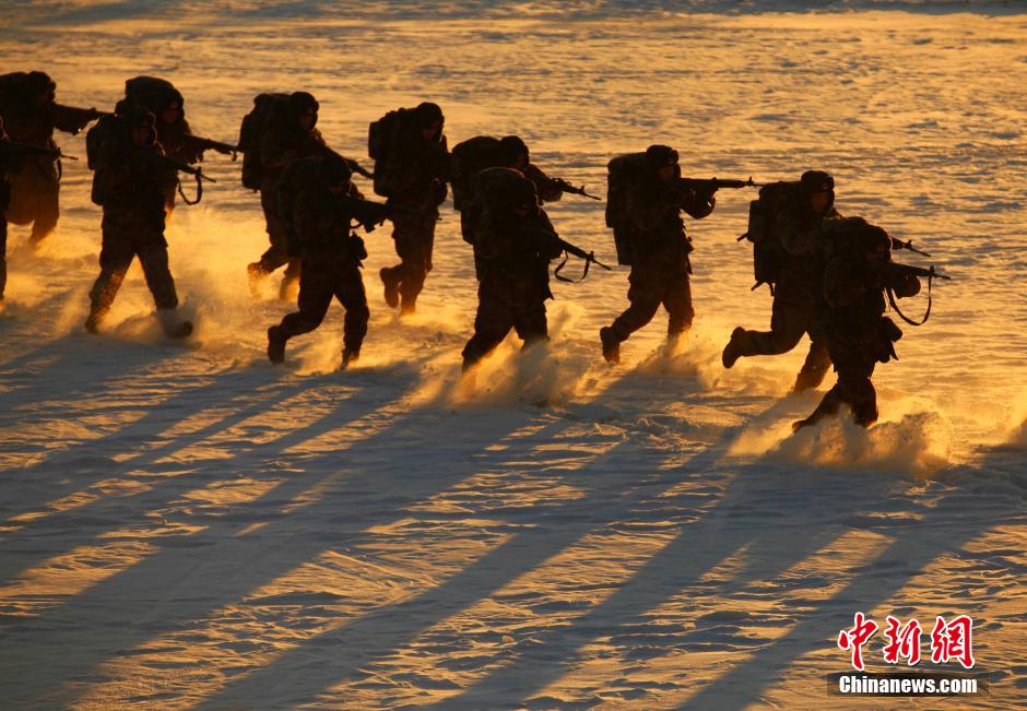 Braving the extreme cold, the frontier soldiers conduct rapid march training in Heihe, northeast China's Heilongjiang province to improve the combat effectiveness of the troops under cold weather conditions. (Photo/CNS)