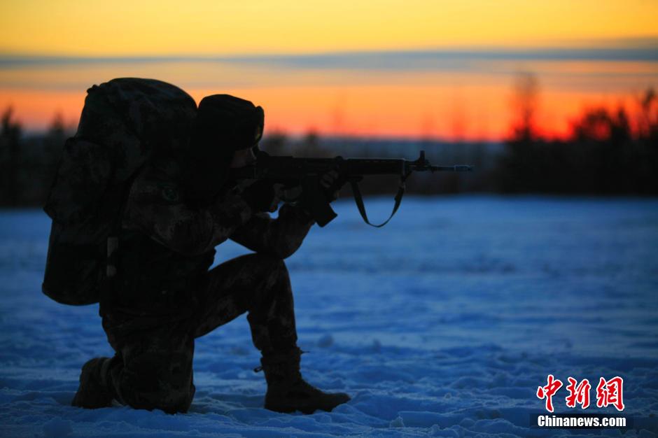 Braving the extreme cold, the frontier soldiers conduct rapid march training in Heihe, northeast China's Heilongjiang province to improve the combat effectiveness of the troops under cold weather conditions. (Photo/CNS)