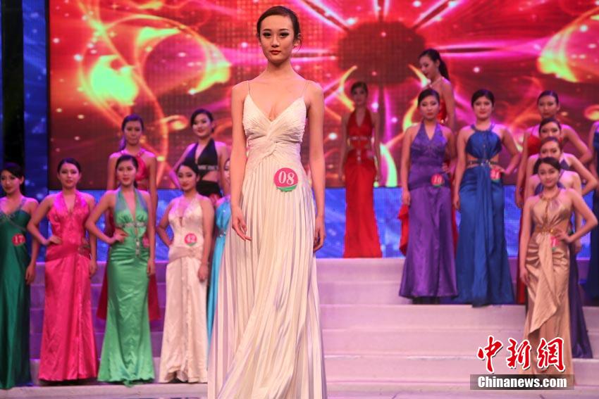 Beautiful girls compete to be image ambassador of Jilin winter tourism at the final competition of the image ambassador of the 20th Jilin International Ice and Snow Festival in Jilin city of northeast China's Jilin province on Jan. 19, 2015. 50 charming contestants participated in the competition and Li Kaisi won the title of “Image Ambassador of Rime”. (Chinanews/Cang Yang)
