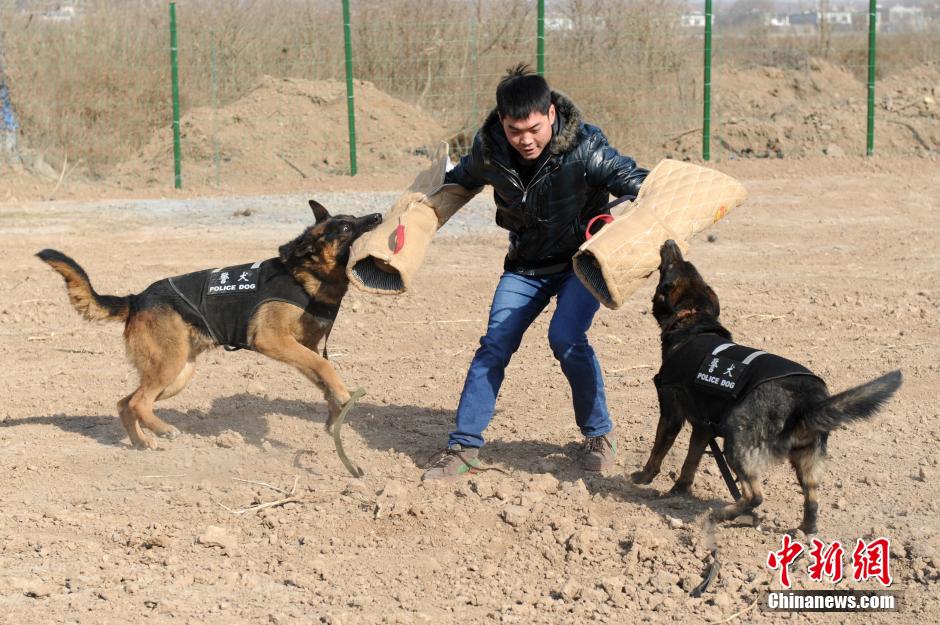 On Jan. 20, 2015, Xi’an railway police conduct 20-day training for police dogs to ensure security check during the traditional Spring Festival travel peak. (Chinanews.com/ Zhang Yuan)