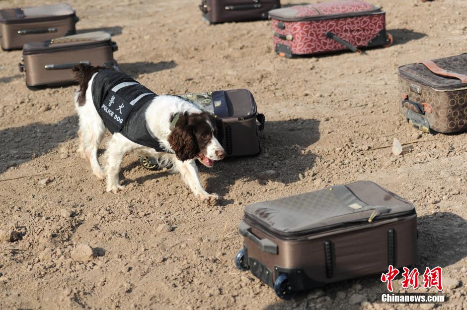 On Jan. 20, 2015, Xi’an railway police conduct 20-day training for police dogs to ensure security check during the traditional Spring Festival travel peak. (Chinanews.com/ Zhang Yuan)