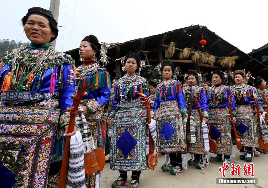 Dong ladies perform a sacrifice dance to celebrate New Year on Jan. 20, 2015. UNESCO has placed 18 Dong villages on the tentative World Heritage site list for China. (CNS/ Li Changhua)