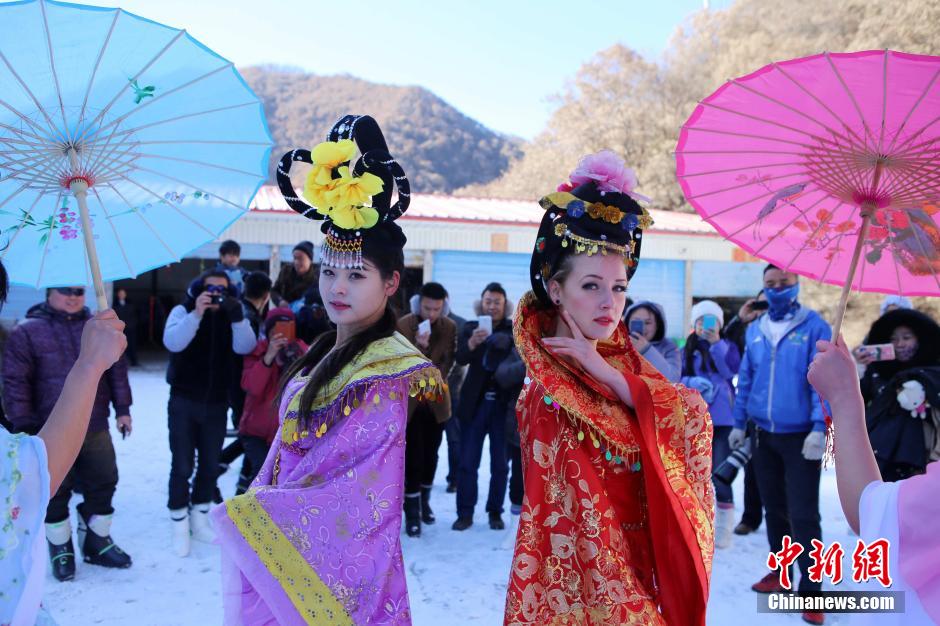 Cosplay! Chinese and foreign beauties ski in ancient costumes
