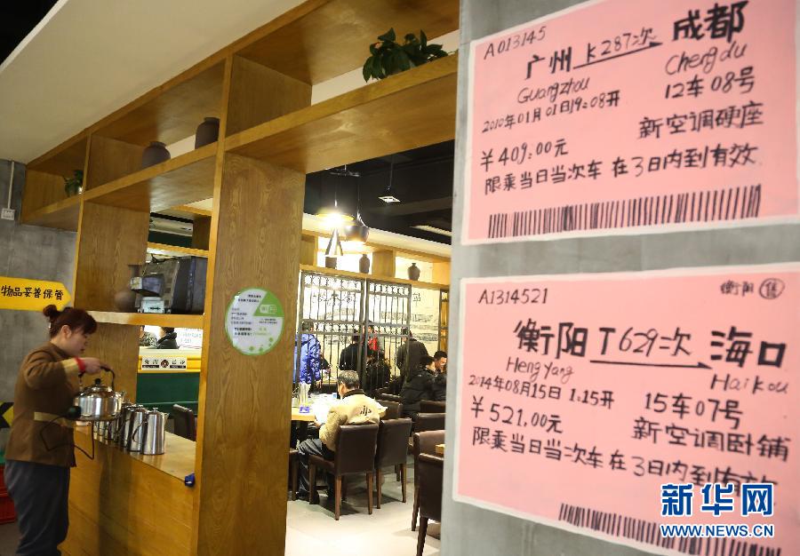 Customers dine in an old-railway-themed restaurant in Hengyang, central China's Hunan province, on Jan. 20, 2015. (Xinhua/Cao Zhengping)