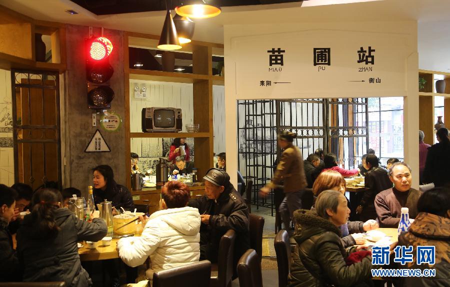 Customers dine in an old-railway-themed restaurant in Hengyang, central China's Hunan province, on Jan. 20, 2015. (Xinhua/Cao Zhengping)