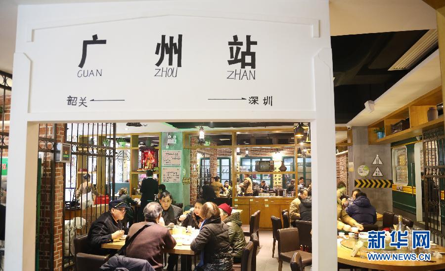 Customers dine in an old-railway-themed restaurant in Hengyang, central China's Hunan province, on Jan. 20, 2015. (Xinhua/Cao Zhengping)