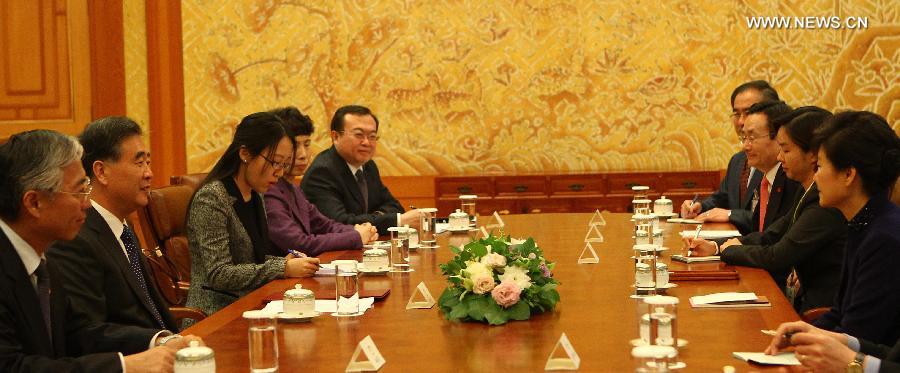 Chinese Vice Premier Wang Yang (2nd L) meets with South Korean President Park Geun-hye (1st R) in Seoul, South Korea, Jan. 23, 2015. (Xinhua/Yao Qilin)