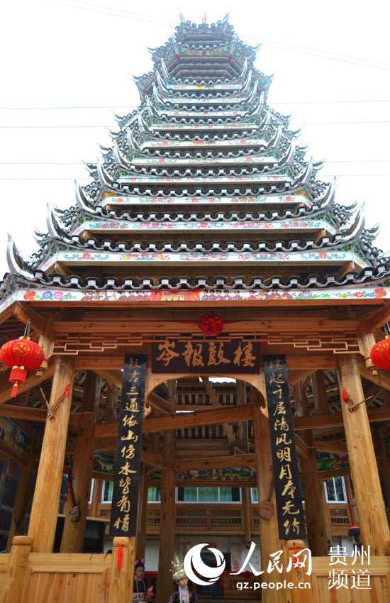 Cenbao drum tower in Congjiang county, southwest China's Guizhou province. (gz.people.cn/He Huiyu)