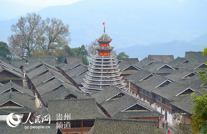 Cenbao drum tower in Congjiang county, southwest China's Guizhou province. (gz.people.cn/He Huiyu)