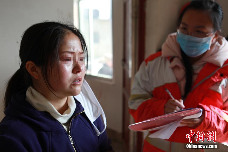 Xiaojie's mother talks with a volunteer from Chinese Red Cross Foundation. (CNS/Yang Su)