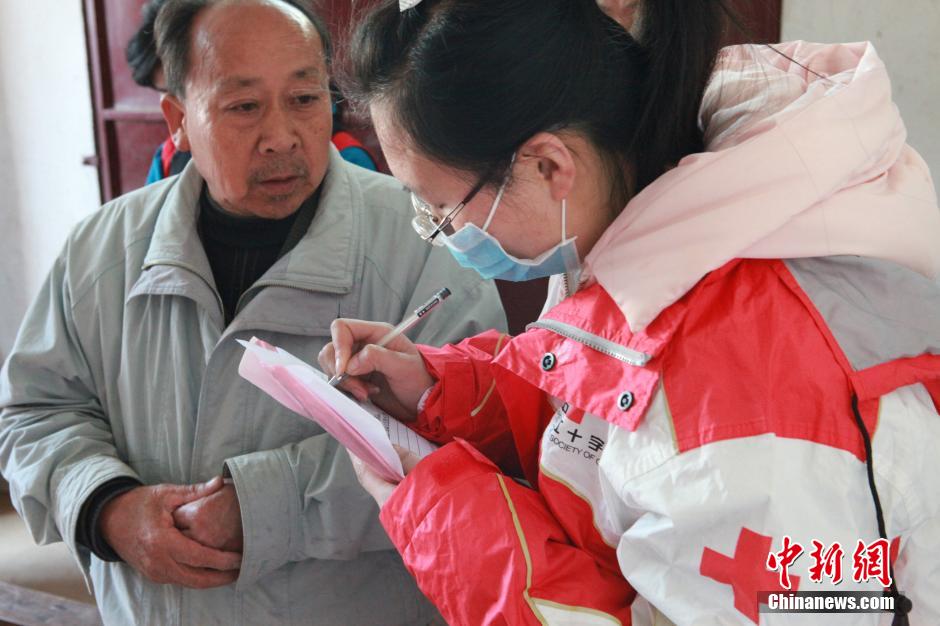Xiaodan's grandfather talks with a volunteer from Chinese Red Cross Foundation. (CNS/Yang Su)