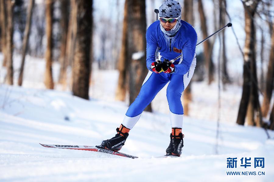 An athlete trains in the snow on Jan. 22, 2015. (Xinhuanet/Wang Kai)