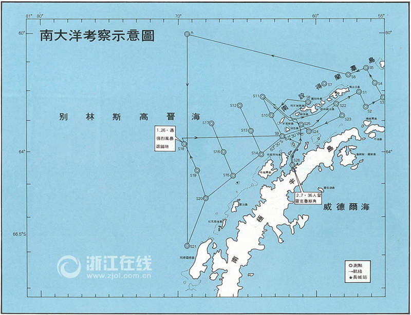 Sketch map of China’s first Antarctic expedition. (Photo/ zjol.com.cn)