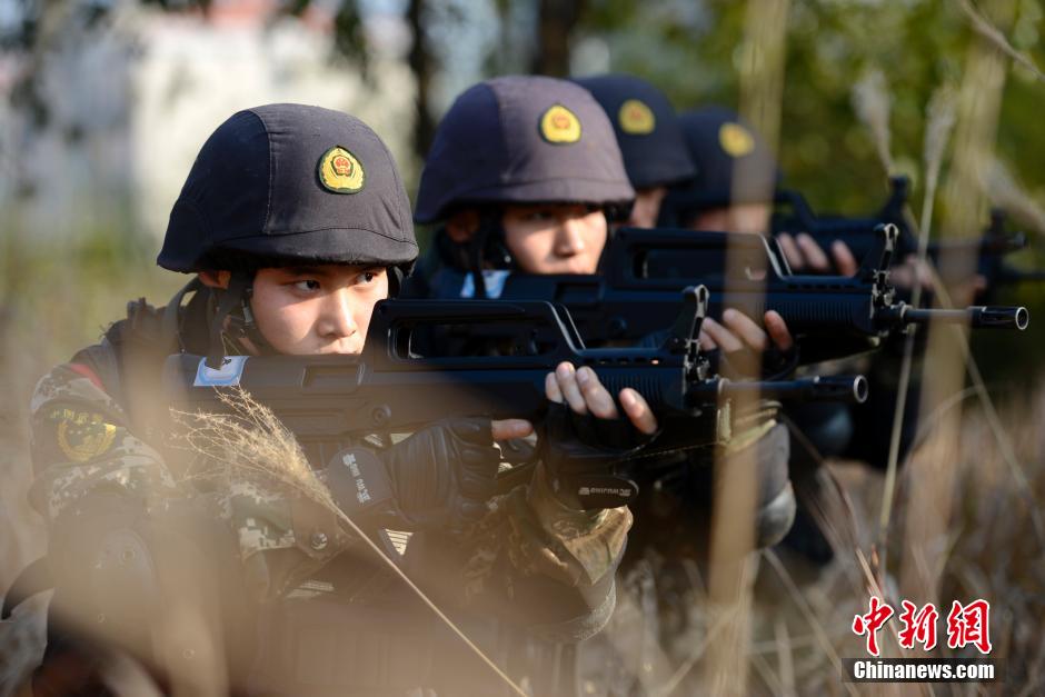 Soldiers from a special detachment of the Armed Police Force in Hunan train on Jan. 21, 2015. (Photo/CNS)