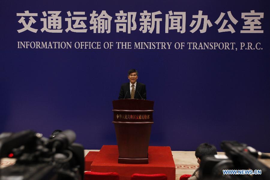 Xu Chengguang, spokesman of the Ministry of Transport(MOT), speaks at a press conference in Beijing, capital of China, Jan. 29, 2015. According to the estimation of MOT, the number of passengers is expected to reach 2,807 millions during the Spring Festival peak travel season this year, increasing by 3.4% over 2014. (Xinhua/Xing Guangli)