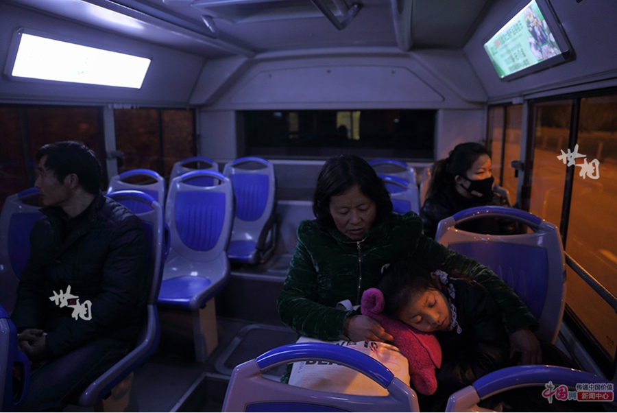 Xiaonan dozes off on the bus. (China.org/Pu Cun)