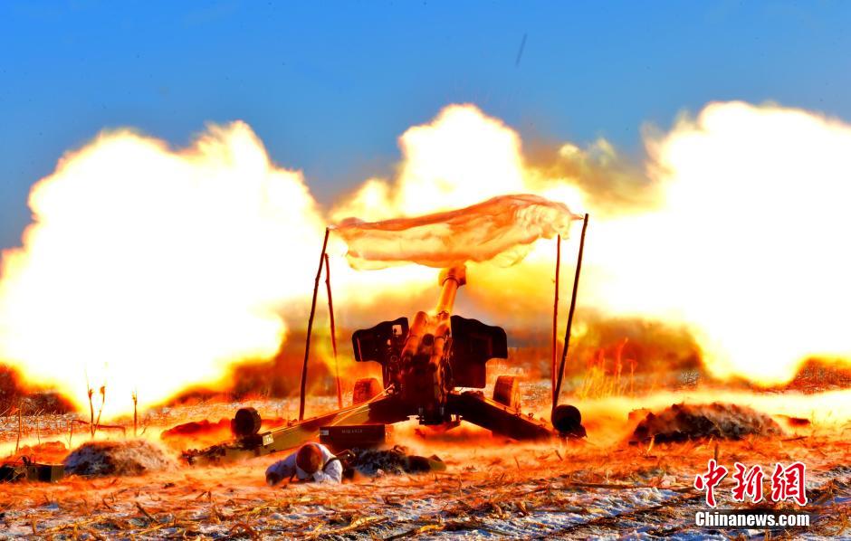 In the severe cold of minus 34 degrees Celsius, a brigade of the 16th Group Army conducts field training in northeast China on Jan. 27, 2015, so as to improve the combat ability of soldiers in severe weather. (Chinanews/Yang Zaixin)