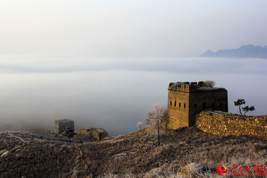 Located in north China’s Hebei province, the Tianqiao Great Wall was built in Ming Dynasty (1368-1644). In winter, the sea of clouds adds more charm to its magnificent landscape. (Photo source: people.cn)
