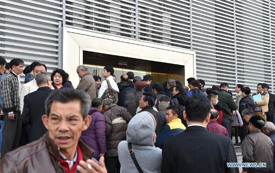 Claimants wait outside China's Supreme People's Court first circuit court in Shenzhen, south China's Guangdong Province, Feb. 2, 2015. The first circuit court of China's Supreme People's Court (SPC) began to hear cases officially Monday in Shenzhen. (Xinhua/Mao Siqian)