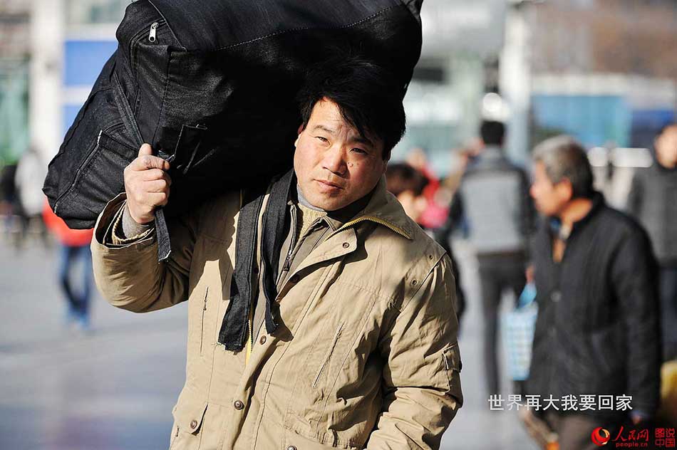 With Chinese lunar new year approaching, a total of 2.8 billion trips are expected to be made by Chinese people during the Spring Festival travel rush, according to the Ministry of Transport last Thursday. Chinese New Year, or the Spring Festival, which falls on Feb. 19, 2015, is China's most important family holiday. Hundreds of millions of people will head to their hometowns to meet with relatives and old friends during the festival.(People.com.cn/Photo)