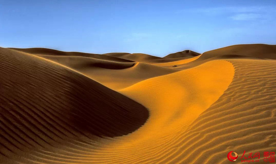 Tengger Desert, located between Helan Mountain and Yabulai Mountain in northwest China, is the fourth largest desert of China, with an area of 42,700 square kilometers. “Tengger” means “sky” in Mongolian, which is to say that the desert is as vast as the sky. (Photo source: people.cn)