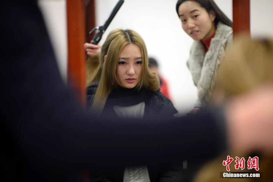 The final of “2014 Kong Fu Competition” is held in Jiangnan Stadium in southwest China’s Chongqing on Jan. 31, 2015. Contrasted with fighting muscle men, the charming octagon girls who showed the number of rounds were especially eye-catching. (Chinanews/Dao Cao)